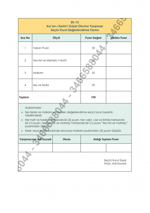 Yarışma 25 Ocak Pazar Saat 13.00 de İmam-ı azam Camiin de yapılacaktır.
